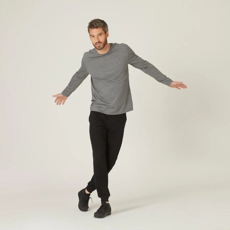 Compra en Decathlon Camiseta fitness manga larga algodón cuello redondo Hombre Domyos Camiseta de manga larga 100% de algodón favorece la ventilación y, con ello, la evacuación del sudor. Producto fabricado con un 30 % de algodón reciclado.