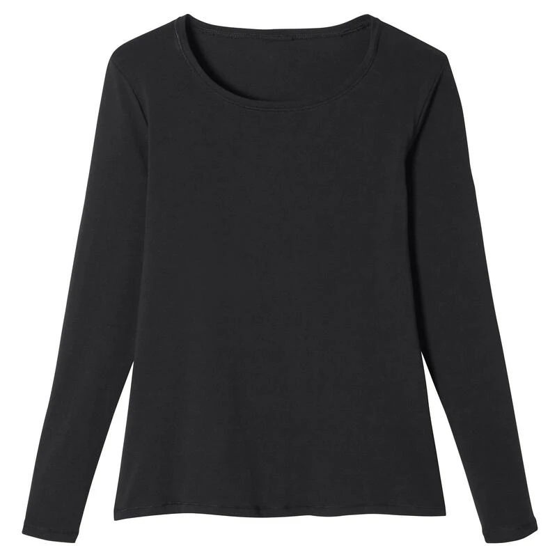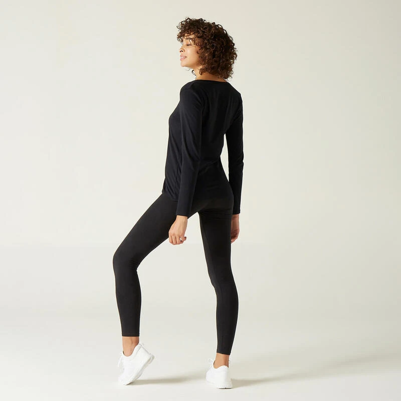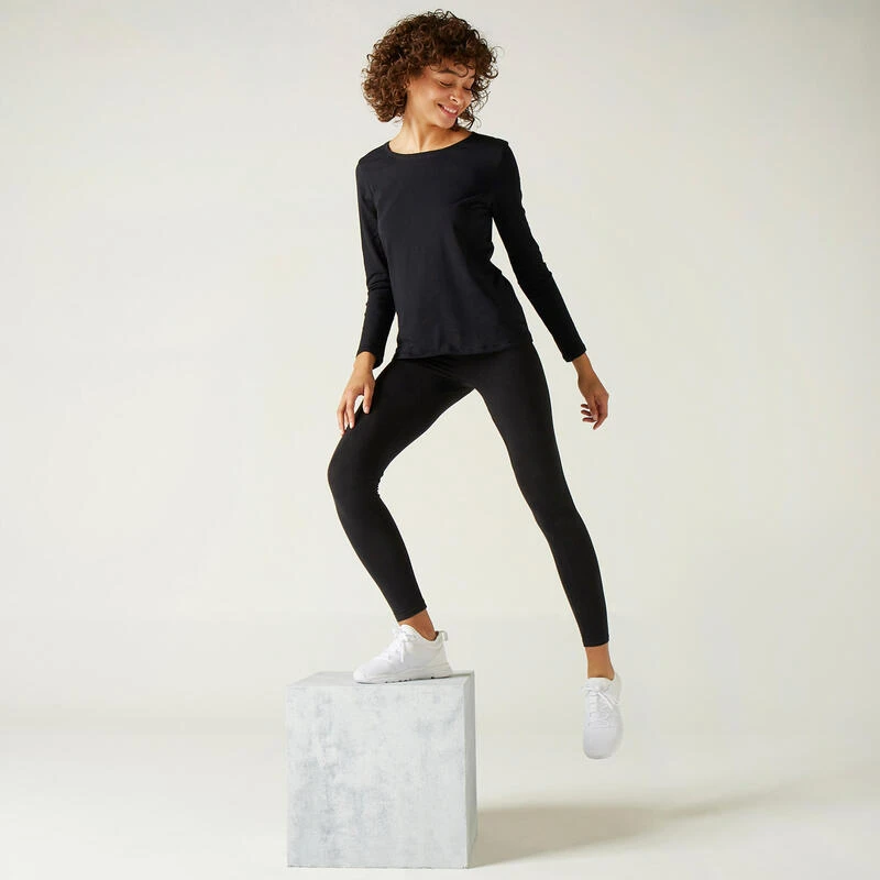 Camiseta Fitness Manga Larga Básica Algodón Mujer Domyos Negro