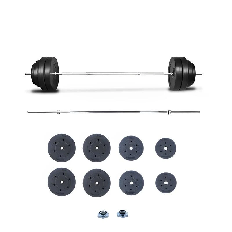 Compra en Decathlon Kit de Pesas de 60KG con Discos, Barra y topes Fitness Musculación Kit de Pesas de 60KG ideal para tus entrenamientos de fuerza para usarlo tanto en casa como en el gimnasio