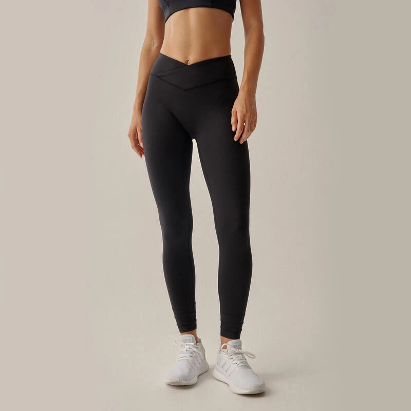 Compra en Decathlon Legging deportivo Ica 7/8 de mujer Black Limba Legging de tejido compresivo con cintura media en forma de V. Bajos recortables: El legging ofrece la posibilidad de ser recortado ofreciendo 3 largos distintos para adaptarse a tu altura y gustos.
