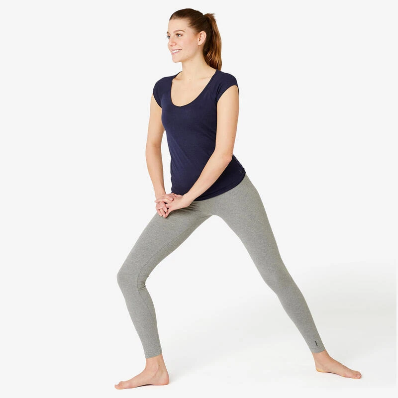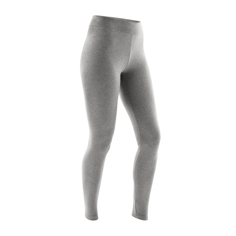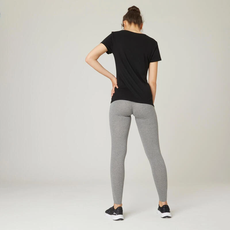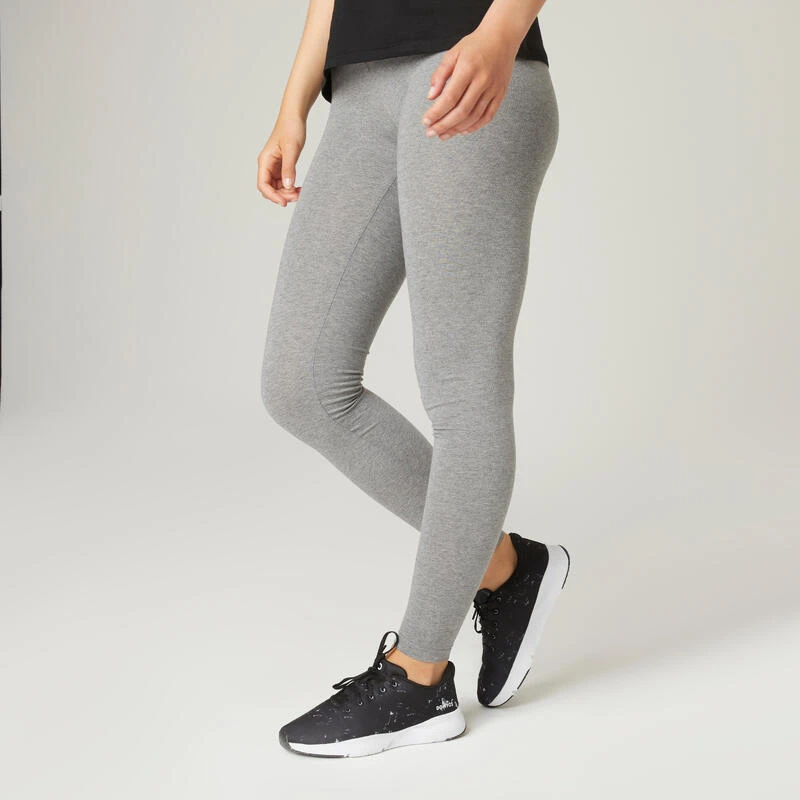 Leggings Mallas Fitness Algodón Efecto Vientre Plano Mujer Domyos Fit 500 Gris