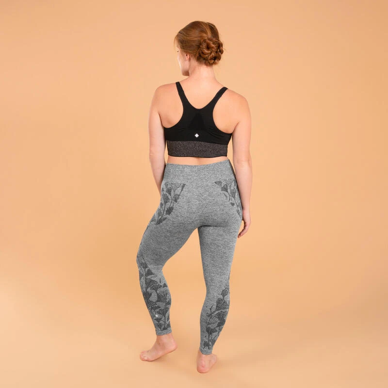 Compra en Decathlon Mallas yoga estampado Ginko Mujer Kimjaly Dyn gris Opacos y transpirables, estos leggings 7/8 tobilleros son un buen básico para acompañar tus sesiones de yoga.