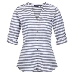 Regatta Camisa Malaya De Rayas De Manga Larga Para Mujer Blanco, Marino