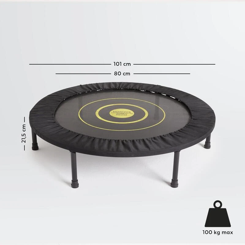 Compra en Decathlon Trampolín cama elástica Cardio Fitness Domyos Trampo 100 cm hasta 100 kg negro Nuestros equipos han diseñado el trampolín 100 PRO para practicar el fitness en casa con total estabilidad.