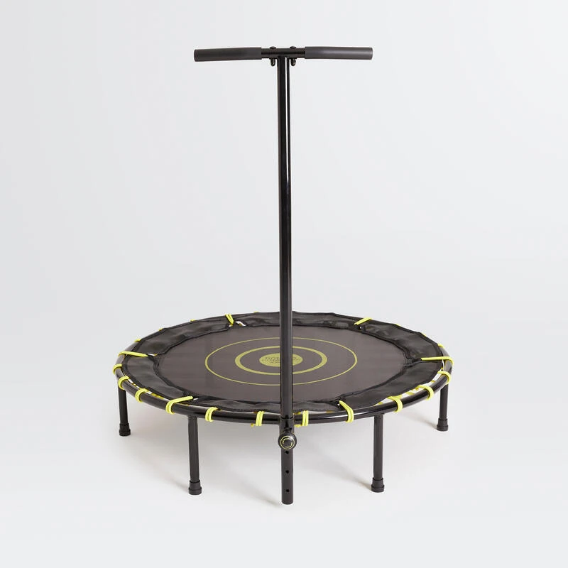 Compra en Decathlon Trampolín cama elástica Domyos FIT TRAMPO 500 81 CM hasta 110 KG Nuestros equipos han diseñado el trampolín 500 con barra frontal desmontable para que puedas superarte con un trampolín compacto que se adapta a todas las prácticas.
